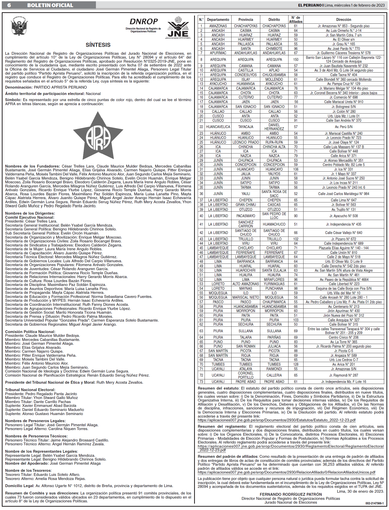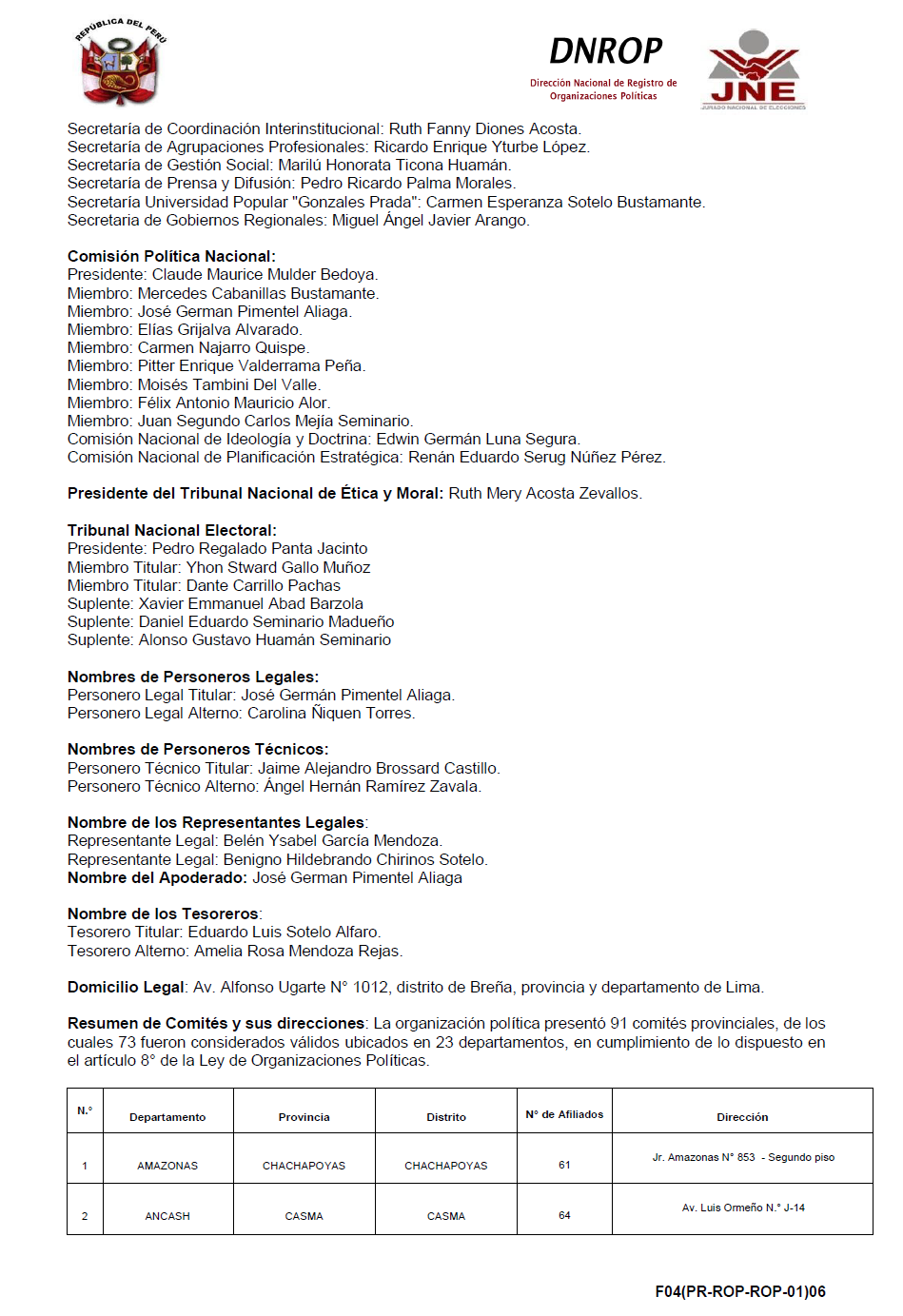 1. Los objetivos del PAP son los contenidos en su Ideario, Estatuto, Reglamento General de Organización y el Reglamento Nacional Electoral.